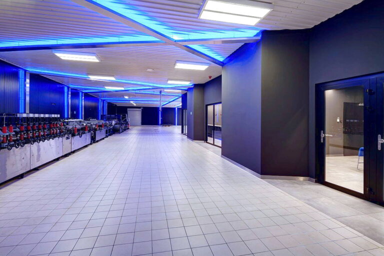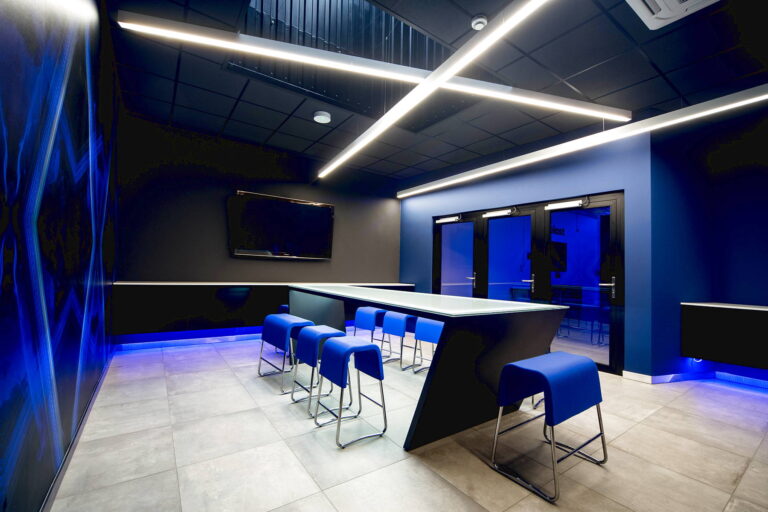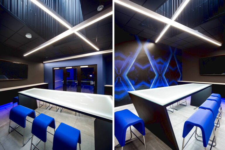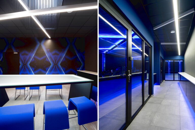 Centrum Innowacji to miejsce spotkań z klientem, gdzie prezentowane są produkty firmy na przykładzie konkretnych wdrożeń. Początkowo była to pusta hala, którą podzieliliśmy na 2 strefy funkcyjne: część ekspozycyjno-konferencyjna oraz część maszynowa.